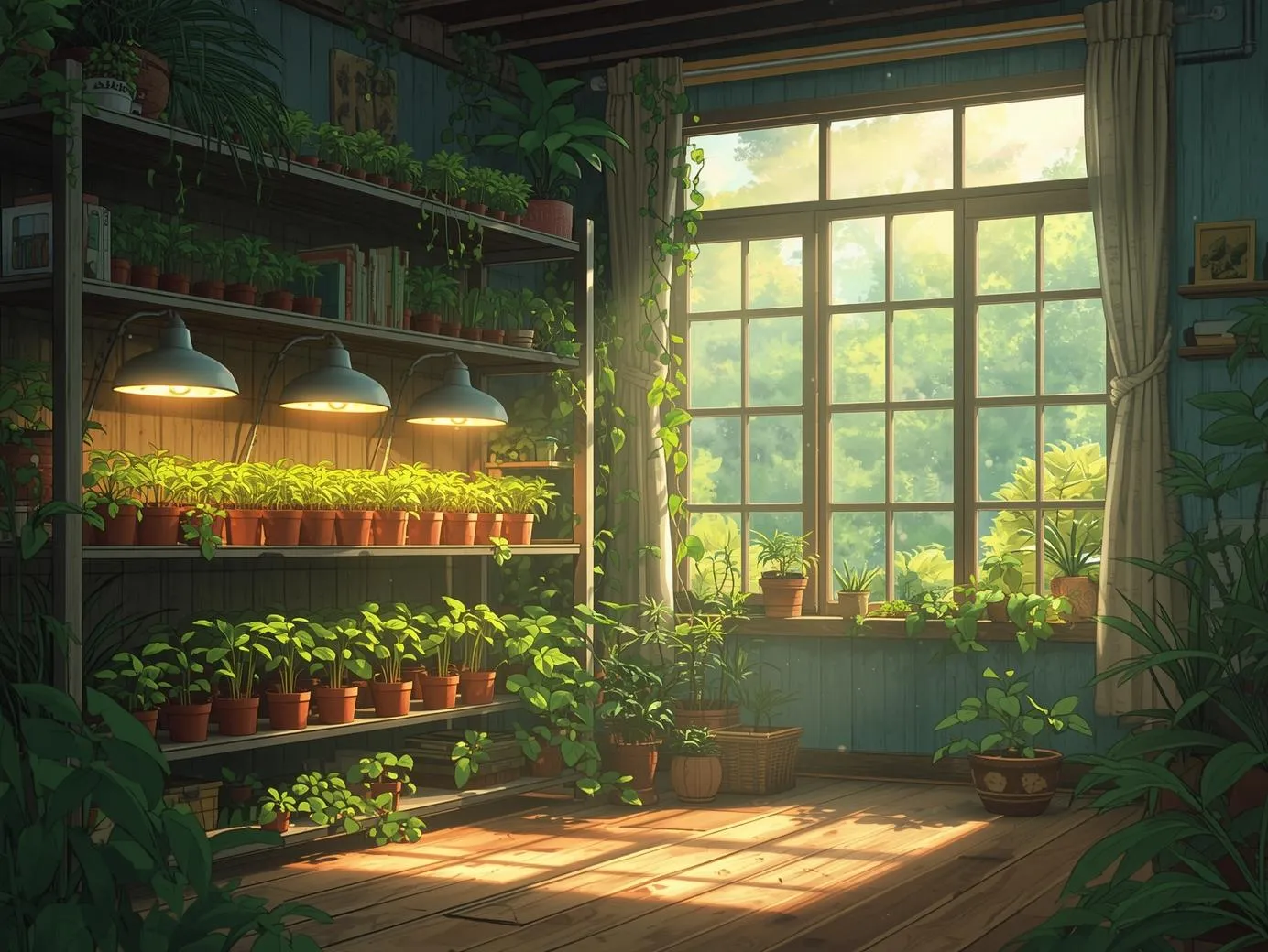 - Full-spectrum grow lights or shop lights